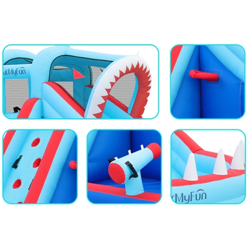 - מתקן קפיצה מתנפח מגלשה קיר טיפוס ותותח מים דגם ED910E