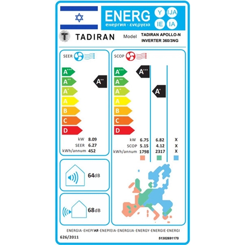מזגן עילי APOLLO INV N-360\3NG תדיראן TADIRAN - מידע נוסף