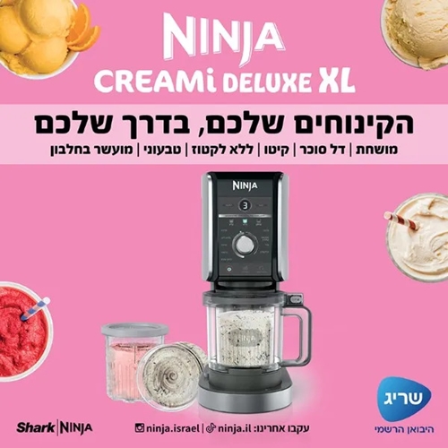 אצלנו, קניות באינטרנט של מכונת גלידה Creami Deluxe XL דגם Ninja NC503 שוות לך פי אלף!