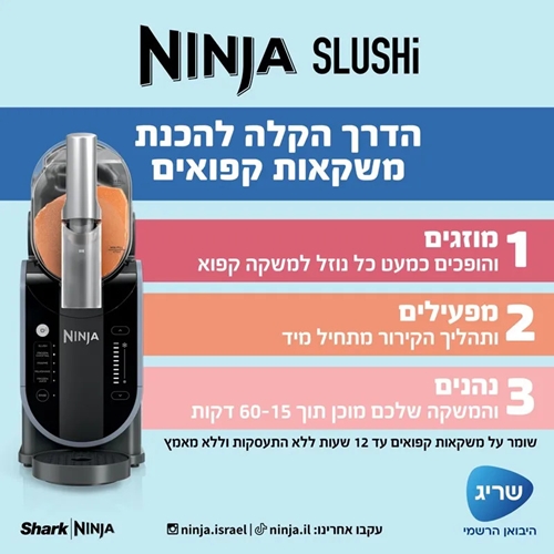 ה- NINJA SLUSHI הופך כמעט כל נוזל למשקאות קפואים בלחיצה אחת!