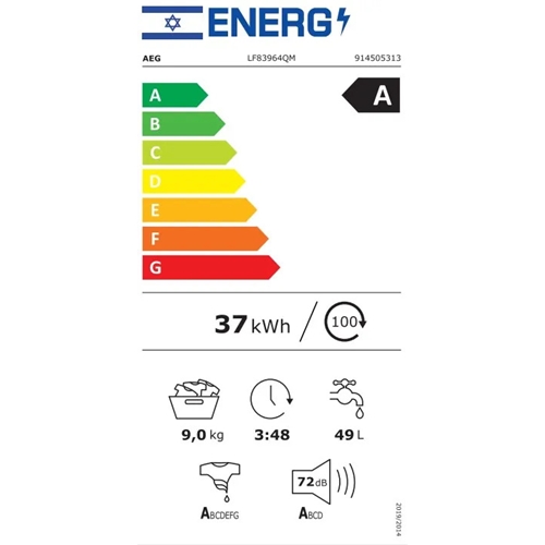 מכונת כביסה 9 ק"ג דגם AEG LF83964QM א.א.ג - מידע נוסף