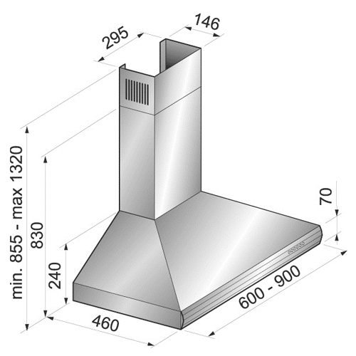 גובה (כולל ארובה מתכווננת) : 132 - 85.5 ס"מ
