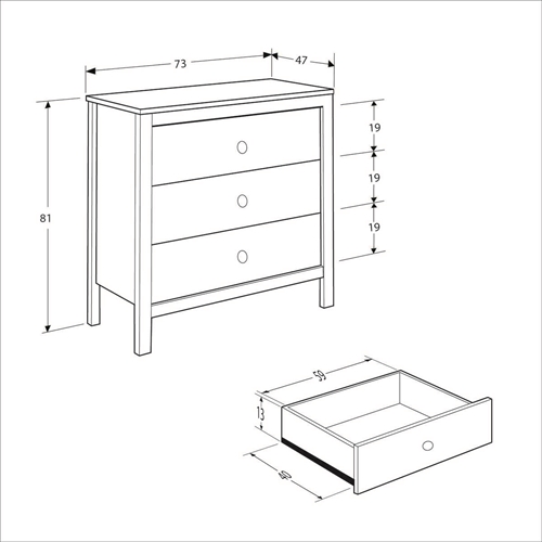גובה כל מגירה: כ- 19 ס"מ