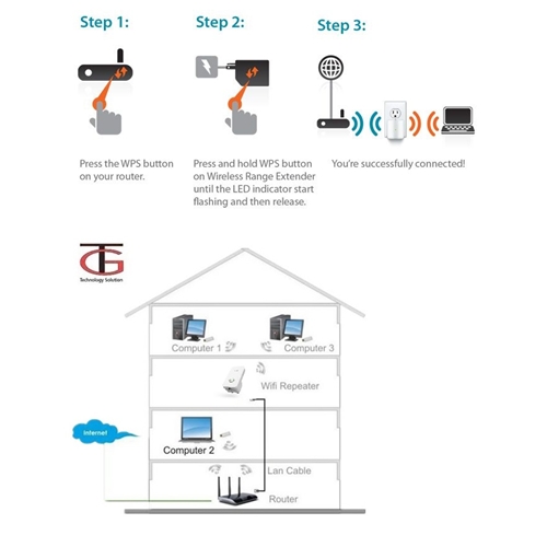 כולל התקנה מהירה על סינכון מהיר בלחיצה על כפתור ה WPS/QSS בנתב ובמגדיל הטווח לסינכרון מהיר