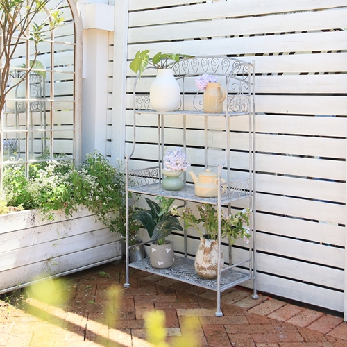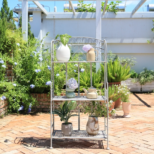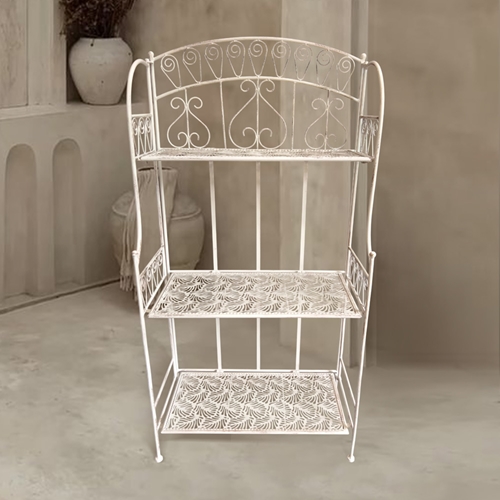- יחידת מדפים ומעמד לעציצים 3 קומות מברזל בעיצוב וינטאג' דגם 9004
