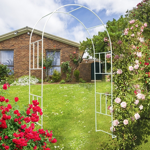 - קשת רחבה ממתכת 146 ס"מ עם בסיסי צד לתמיכת צמחים מטפסים ועיצוב הגינה דגם אורנית