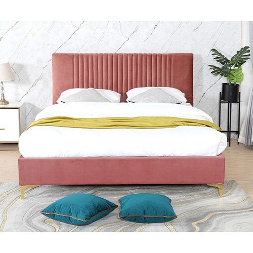 - מיטה זוגית מרופדת בד קטיפתי עם רגלי ברזל דגם ליידי HOME DECOR