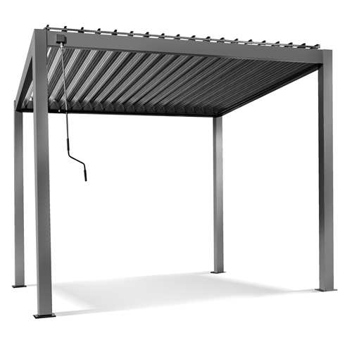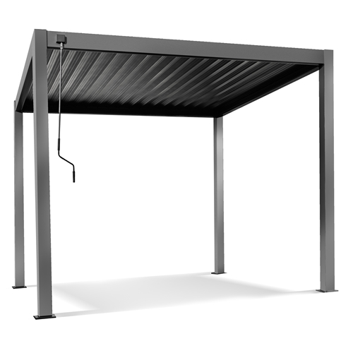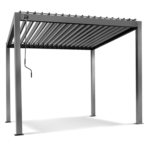 גזיבו אלומיניום מפואר בצבע אפור כהה גג רפרפות מתכוונן – נוח במיוחד. ניתן לפתיחה וסגירה בעזרת מנואלה