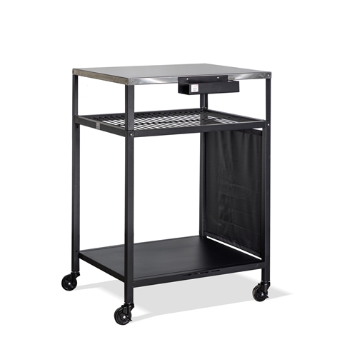 עגלה יציבה ואיכותית לטאבון עם משטח עבודה מנירוסטה עמיד וקַל לניקוי.