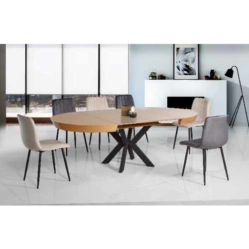 - פינת אוכל עגולה מעץ נפתחת עם רגלי ברזל דגם גורמה 2 קארין + 4 כיסאות LEONARDO