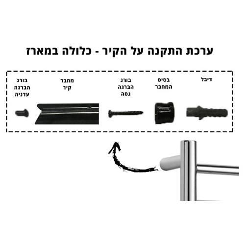 דיבלים, ברגים ומחברים לחיבור לקיר מסופקים במארז.