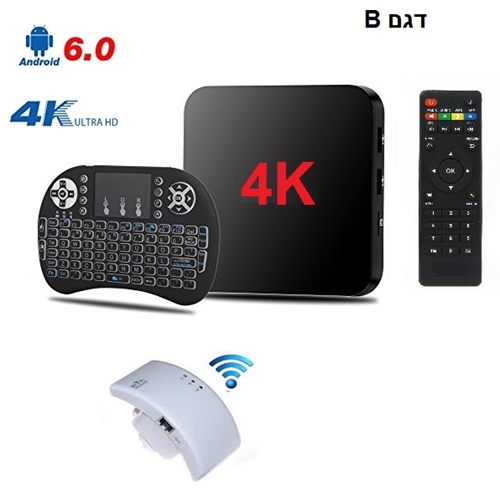 - סטרימר עוצמתי 4k עם נגן KODI מובנה + שלט רחוק + מקלדת אלחוטית עברית/אנגלית +מגדיל טווח קליטת אינטרנט בשווי 99 ₪ מתנה