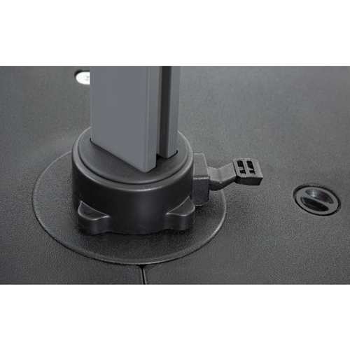 בסיס למילוי במים או חול – מספק יציבות מצוינת גם בימי רוח קלה. מגיע עם 2 גלגלים. בצבע שחור בגודל 82X82 ס”מ במשקל 100 ק”ג.