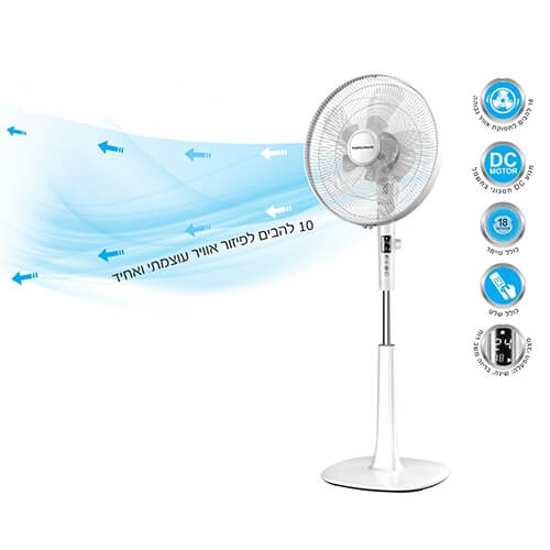 - מערכת להבים כפולה– 10 להבים לספיקת אוויר גדולה יותר פי 3 ממאוורר 16 אינץ' רגיל, לקירור יעיל של חלל החדר
