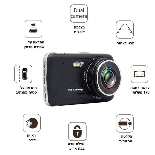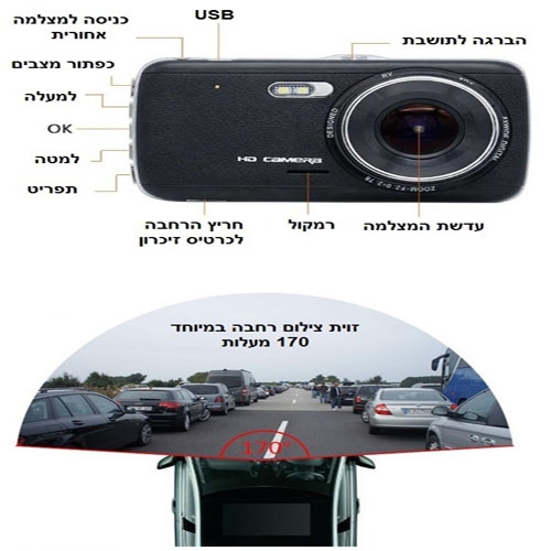 - מצלמת דרך לרכב באיכות HD 1080P.