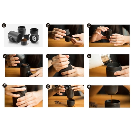מפעילים את המשאבה ומנפחים עד ליצירת הלחץ המתאים , מוסיפים מים חמים (מקומקום או בקבוק תרמוס), מכניסים את הקפה הטחון או הפוד, משחררים את השסתום ומפיקים אספרסו באיכות גבוהה!
