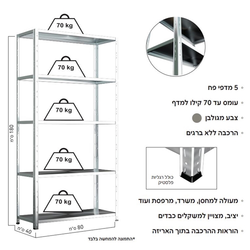 סט מדפים מתכת בצבע מגולוון - לעומס 70 ק"ג למדף.