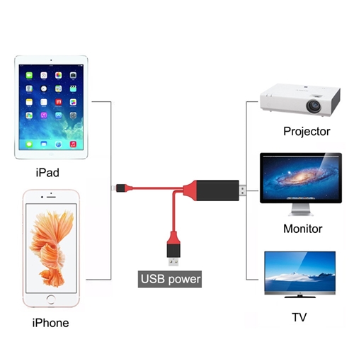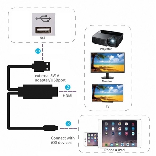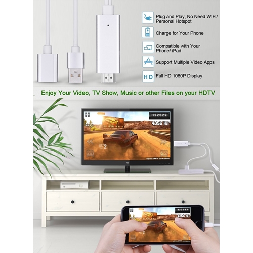כבל לחיבור הסמארטפון לטלוויזיה עם HDMI באיכות FULL HD 1080P המתאים ל- iPad 4/Mini/Air,iPhone 7/7 Plus,iPhone 6/6 Plus/6s/6s Plus,iPhone 5/5c/5s,iPod Touch 5. כולל כבל HDMI מובנה