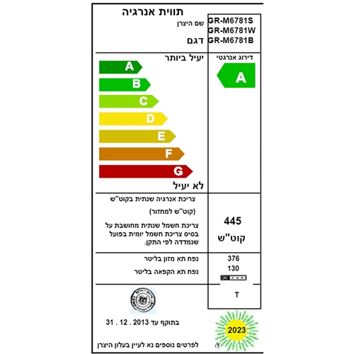 מקרר LG מקפיא עליון בנפח 515 ליטר GR-M6781W לבן - מידע נוסף