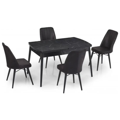 - שולחן אוכל נפתח עם מגירת אחסון בגוון שיש שחור ורגליים שחורות דגם רוי H.KLIEN