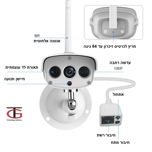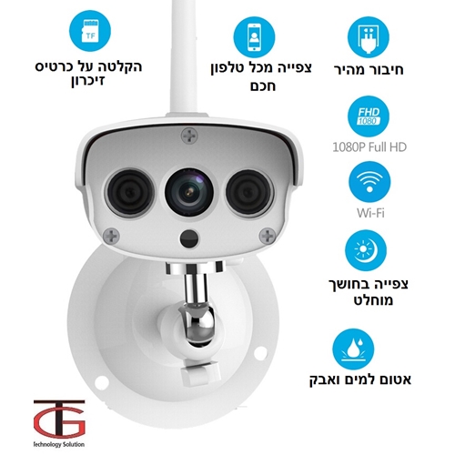 מצלמת אבטחה FULL HD 1080P IPמצלמת אבטחה FULL HD 1080P IP דגם: IP9 - מידע נוסף