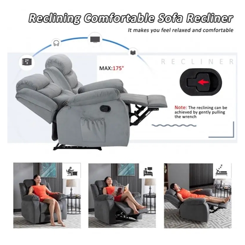 ריקליינר מתכוונן – מנגנון פתיחה חלק המאפשר מעבר קל ונוח בין מצבי ישיבה, מנוחה ושכיבה מלאה.