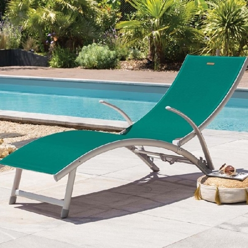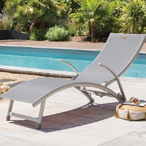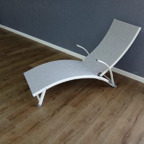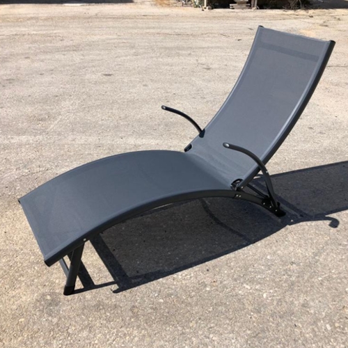 מיטת שיזוף איכותית וקלילה העשויה אלומיניום מוברש ובד טקסליין עמיד.