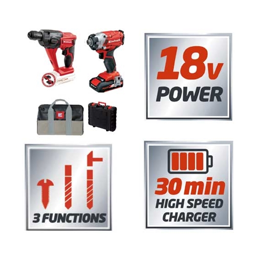 סט מברגת אימפקט + גוף פטישון + סוללה Einhellסט מברגת אימפקט + גוף פטישון + סוללה Einhell דגם: סט ליתיום 2 - מידע נוסף
