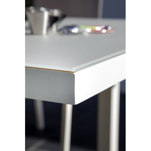 השולחן משולב רצועות זכוכית מחוסמת לכל אורך השולחן