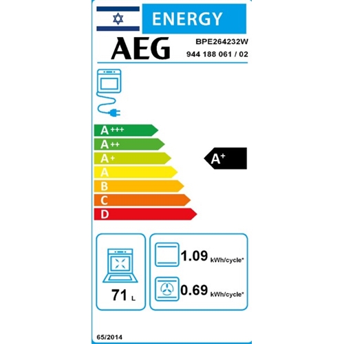 תנור רב-תכליתי בנפח 71 ליטר בצבע לבן מבית AEGתנור רב-תכליתי בנפח 71 ליטר בצבע לבן מבית AEG דגם: BPE264232W - מידע נוסף