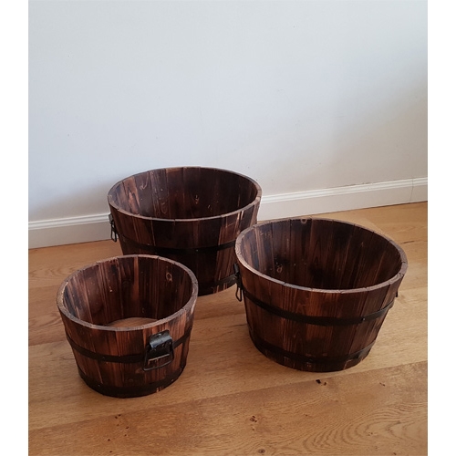- סט 3 חביות שתילה ונוי מעץ דגם 264