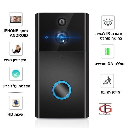 - עינית אלחוטית לדלת הכוללת מצלמה באיכות HD, לצפייה בסמארטפון, טאבלט או מחשב דרך האינטרנט ומתאימה לכל סוגי הדלתות !