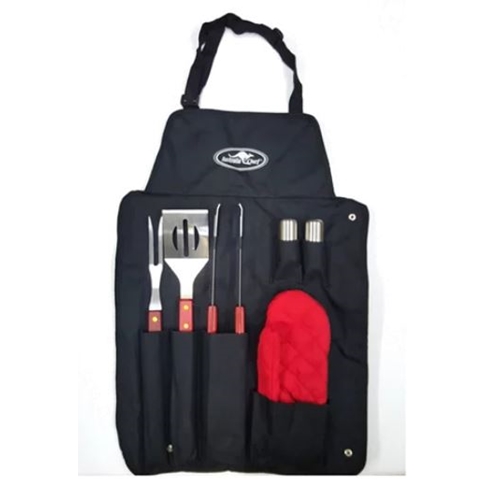 סט 5 כלים כולל סינר, כפפה, מזלג גדול, מחית, מלקחיים לאחיזה נוחה,