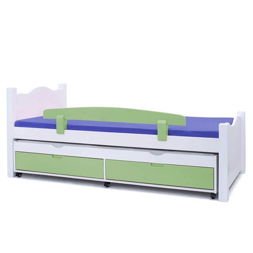 כולל: מיטה, מיטת חבר נגררת עם מנגנון עצירה, זוג מגירות אחסון ומעקה נשלף