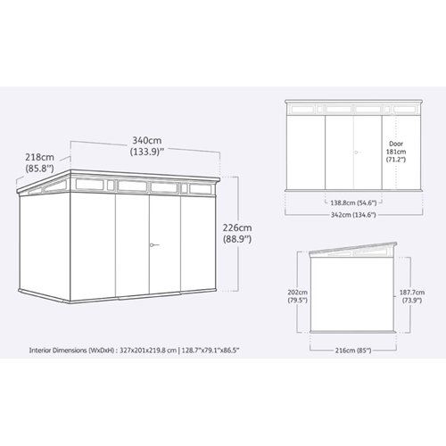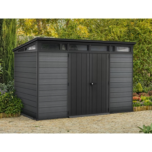 מחסן גינה קורטינה 11X7 בעיצוב מתקדם ועכשווי, פתרון אחסון יעיל ונוח מבלי להתפשר על העיצוב.