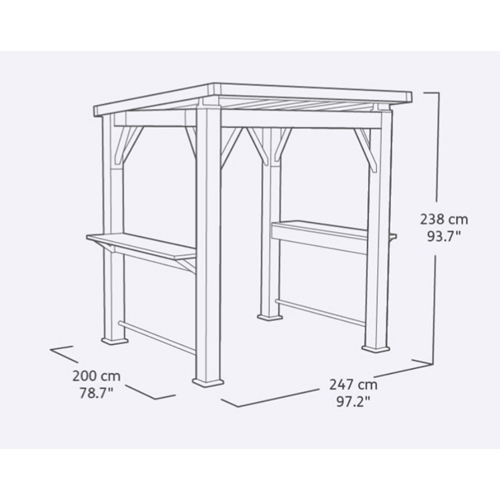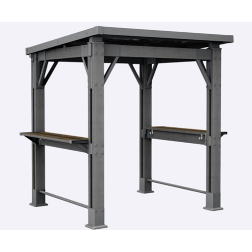 לגזיבו שני דלפקי בר מובנים בנראות המדמה עץ טבעי – מושלמים להגשה ואירוח. המבנה עשוי פלסטיק עמיד וידידותי לסביבה, מחוזק במוטות מתכת, ועמיד בפני תנאי מזג אוויר משתנים.