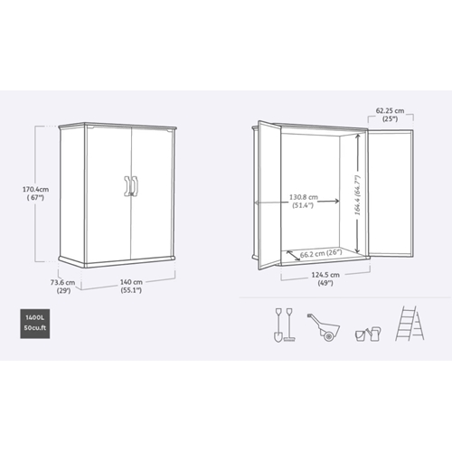 מחסן גינה דגם פרימייר גבוה אפור KETER כתר פלסטיק - מידע נוסף