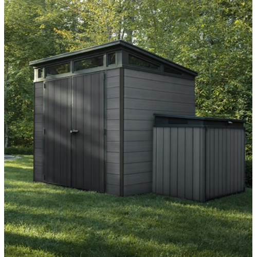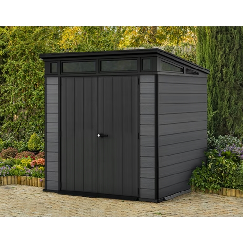 מחסן גינה קורטינה 7x7 בעיצוב מתקדם ועכשווי, פתרון אחסון יעיל ונוח מבלי להתפשר על העיצוב.