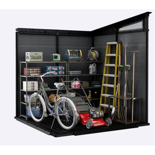 המחסן בנוי מלוחות EVOTECH ומחוזק במתכות, חזק ועמיד במיוחד.