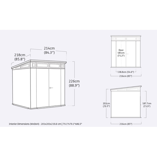 מידות חוץ לשטח המחסן: 216x216 ס"מ