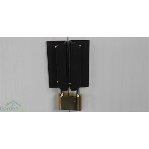 למחסני המתכת מבית Garden Top זוג דלתות הזזה על מסילה פנימית ו-4 פתחי אוורור ובעלי חלון ייחודי.