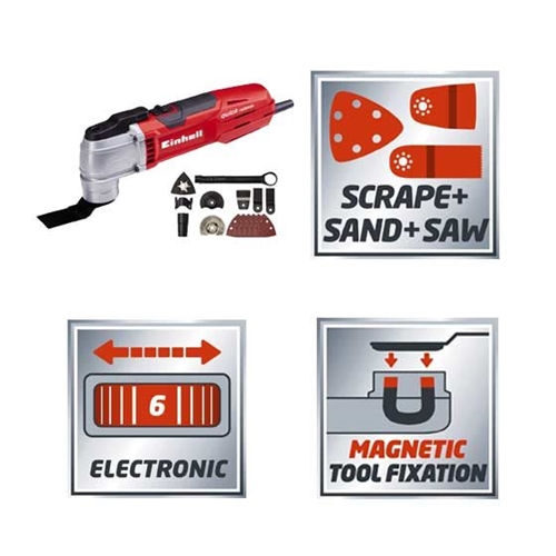 מולטיטול עם סט אביזרים מקצועי לפעולות רבות Einhellמולטיטול עם סט אביזרים מקצועי לפעולות רבות Einhell דגם: TE-MG 300 EQ - מידע נוסף