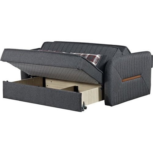 היא נפתחת יש גם יחידה שיוצאת מהחלק התחתון של הספה החוצה ומשמשת כארגז מצעים.