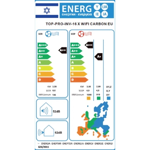 מזגן עילי TOP-PRO-INV-16 X WIFI CARBON EU טורנדו - מידע נוסף