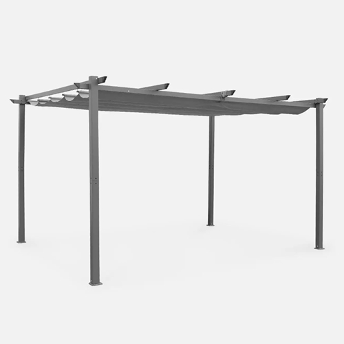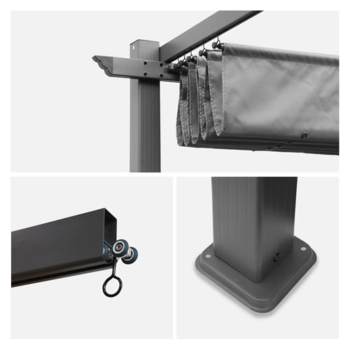 - גזיבו מאלומיניום כולל כיסוי עליון על מסילה גודל 4 מטר על 3 מטר בצבע אפור