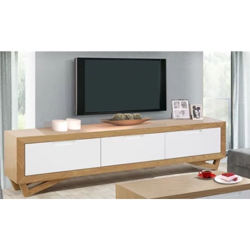 מזנון עשוי משילוב של עץ ו MDF ובעלת צבע לבן וצבע עץ.