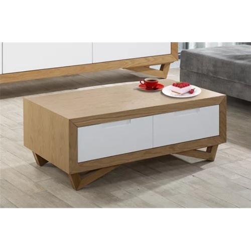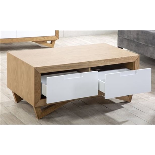 השולחן עשוי משילוב של עץ וMDF ובעל צבע לבן וצבע עץ.