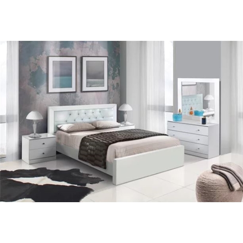 הוא כולל מיטה זוגית, שתי שידות, קומודה ומראה.
