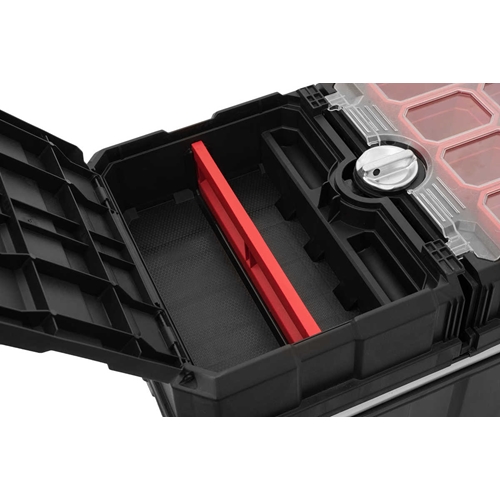 המכסה כולל ארגונית לחלקים קטנים בעלת שישה תאים נשלפים ותא בעל מחיצה לכלים ידניים.