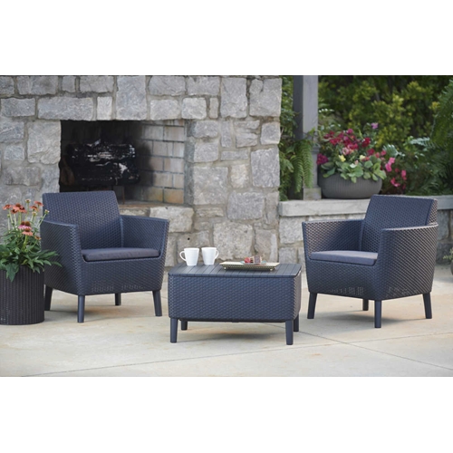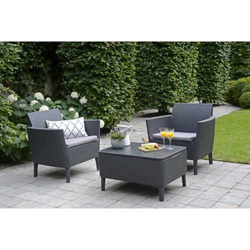 סט הכולל שתי כורסאות ושולחן קפה תואם המשמש כשולחן אחסון